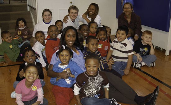 It’s the first: Dr. Nicole McGrath (center) poses with volunteers and children during a break at KinderSmile Foundation’s first ‘Give Kids A Smile Day’ in…