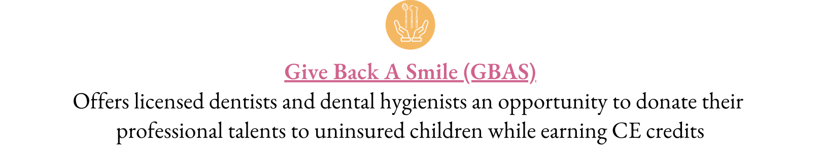 Please join our efforts of bridging the gap in access to oral health care in our own state, and Give Back a Smile! Thank you for being a part of the solution!